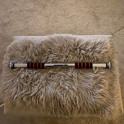 Setissä pieniä käytönjälkiä ja yksi punainen koristelevy puuttuu yhden 2.5kg kiekon alareunasta. Nämähän ei kuitenkaan vaikuta käyttöön, vaan hyvä treenisetti on tarjolla kohtuuhintaan. Mielellään myisin settinä, mutta aina voi tarjota, jos vain osa kiinnostaa.