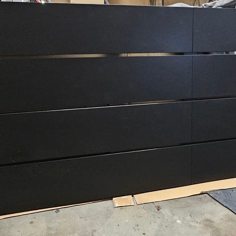 Hyväkuntoinen seinäänkiinnitettävä sängynpääty. Mukana neljä siirreltävää lokeroa, joissa harmaat huopapehmusteet. Isommissa lokeroissa pieni lovi josta saa näppärästi vaikka laturin johdon kulkemaan (kts. kuva).