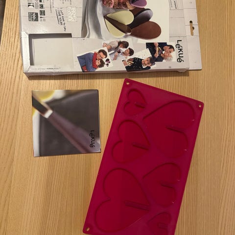 Käyttämätön punainen Lékué taikinanuolija. Valmistettu 100-prosenttisesta platinasilikonista.