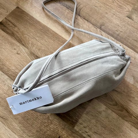 Marimekko Karla shoulder bag completely unused and in brand new condition. Color ID 089 Beige doesn’t seem to be for sale any more. Posuct ID 090154. 100 % leather, lining 100 % polyester. One size.