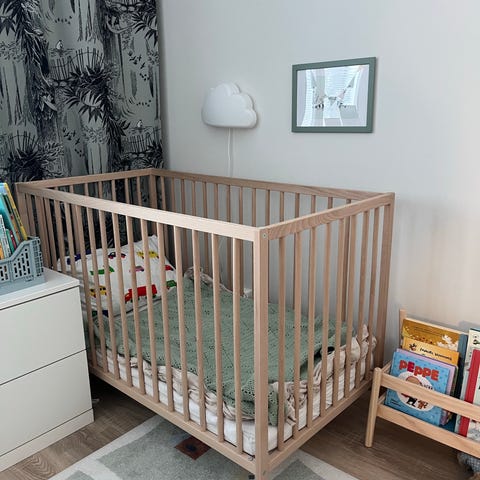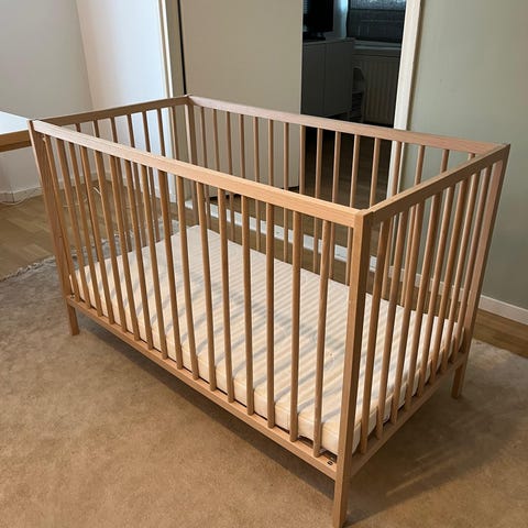 Myydään Ikean Sniglar pinnasänky, pohja asennettavissa kahteen eri tasoon. Mukaan patja ja patjansuoja (pesty).