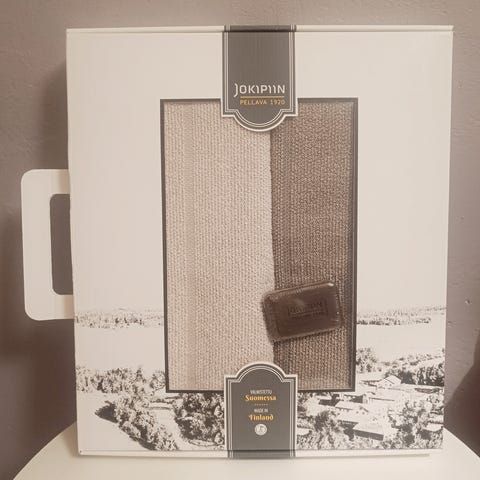 Myytävänä myös yhteensopiva Jokipiin kylpytakki, koko XL. Erikseen ostettuna 250 € ja kylpypyyhkeen kanssa ostettuna yhteishintaan 300 €