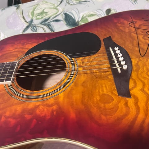 Hohner puoliakustinen kitara, punainen väri. Kitara on metallikielinen akustinen ja varustettu sähköisellä sisäisellä mikrifonilla jossa on säätimet volume, bass, mid, treble ja brightness. Sopii erilaisiin soitto- ja esiintymistarkoituksiin. Mukana kaikki mitä tarvitsee: kova lukittava kotelo (avaimet tallessa), viritysmittari ja äänirauta, plektra ja joitakin varakieliä.