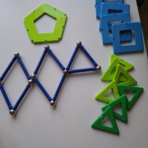 Myydään magneettinen rakennussarja, jossa lisänä rengasalustoja.