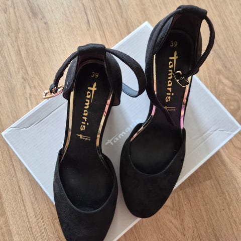 Tamaris korkokengät, koko 39. Väri musta, pinnassa krokokuviointi.