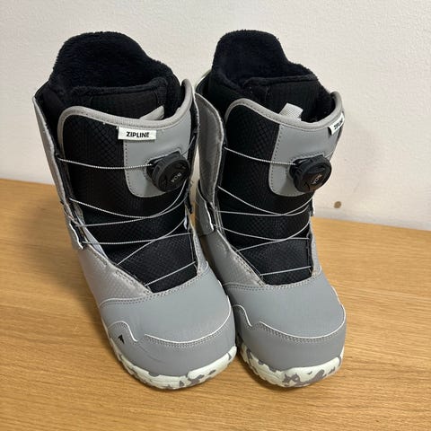 Siistikuntoiset käytetyt Burtonin zipline boa -lautailukengät koossa 40. Vasemmassa kengässä pieni, alle cm:n kokoinen kulumajälki, jota ei huomaa normaalissa käytössä, ks. viimeinen kuva. Juniorimalli ja napakkaa kokoa, oli meillä käytössä kun muut kengät noin kokoa 38.