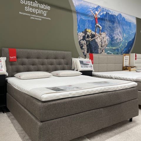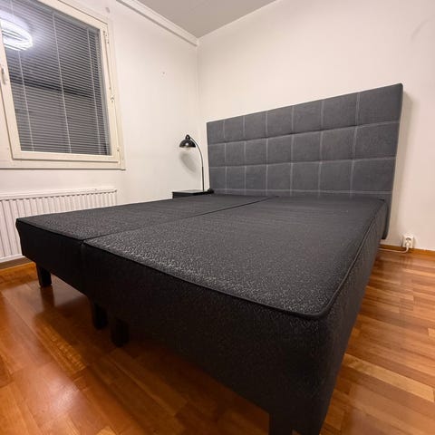 Myydään vuonna 21 ostettu Wonderlandin W8 jenkkisänky 180*200 päädyn kanssa. Kangas tumman harmaa. Päällimmäiset patjat vaihdettu -23 Askon Annia patjoihin. Patjoissa medium ja hard kovuudet, petauspatja myös Askon, muuten wonderlandin runko sekä alapatjat. Rungosta pystyy säätämään lantion tukea erikseen. Sänky täysin ehkä ja siistissä kunnossa. Sängyn pystyy purkamaan kuljetusta varten. Pienen koiran talous.
