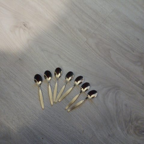 10 kpl, 10 cm pitkiä kahvilusikoita, hinta yhteensä 15 euroa plus posri