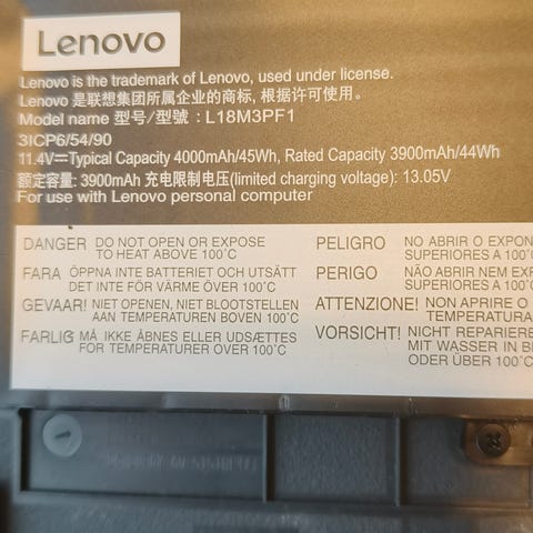 Akku on irrotettu Lenovo-kannettavasta.