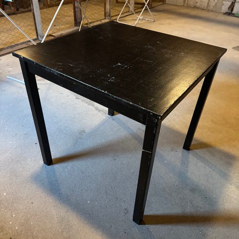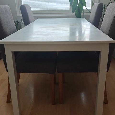 Pieni 4 henkilön ruokapöytä. Pöydässä on pieni naarmu joka näkyy kuvassa.