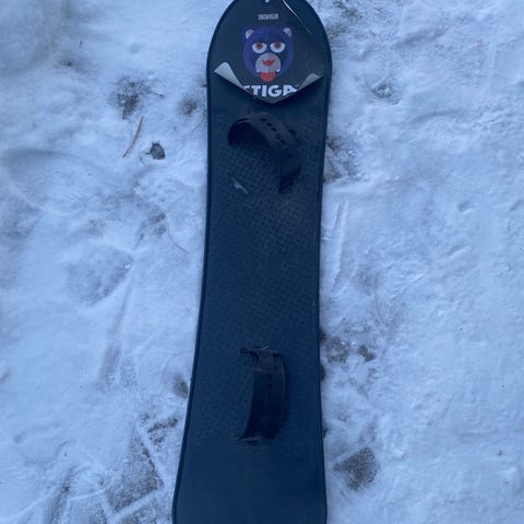 Myydään Stiga lasten ensilumilauta, jossa säädettävät kenkähihnat. Koko: 98 x 22 cm.