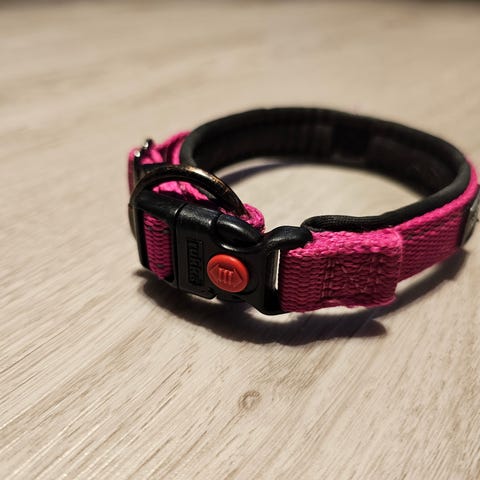 Säädettävä punainen koiran kaulapanta pikalukolla 20-30 cm. Sopii säädettävyyden ansiosta myös kasvavalle pennulle. Pannassa helppokäyttöinen turvalukko sekä kaksi D-rengasta taluttimen kiinnitystä varten