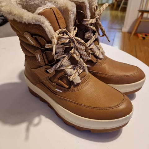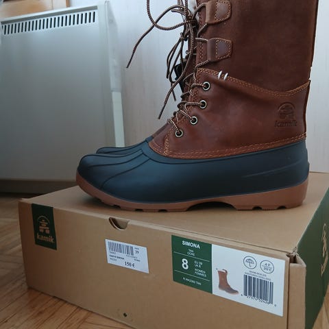 Kamik Celeste M talvikengät koko 42. Kengät ovat ruskeat ja valmistettu nahkamateriaalista. Sisältä vuorattu lämpimällä materiaalilla. Soveltuvat kylmiin olosuhteisiin ja talvikäyttöön.