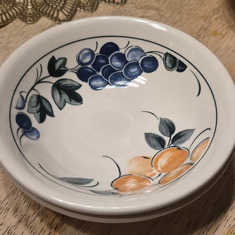 Biltons England -merkkisiä kulhoja, joissa on hedelmäkuvio. Halkaisija 16cm.