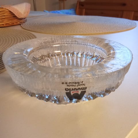 Myydään lasinen Muurlan tuikkualusta ”Jääkidetuikkula”, alkuperäisessä paketissa. Käyttämätön.