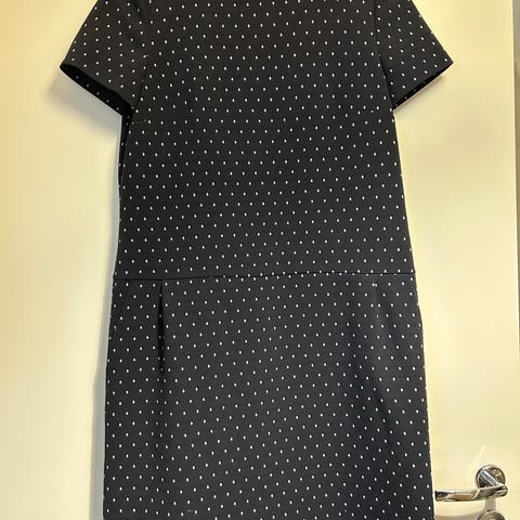 Kuin uusi, tummansininen 1.2.3 Paris -mekko, jossa on valkoisia pieniä kuvioita. Olkapää-helma taittoon asti 91 cm + 3 cm. Kainalo-kainalo n. 50 cm. Kuvissa materiaali- ja pesuohjeet. Nouto tai