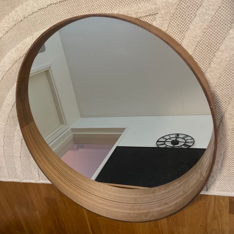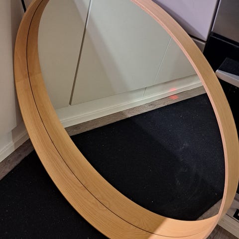 IKEA STOCKHOLM 80cm pyöreä peili, jossa on puukehys.