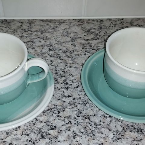 Myydään neljä teekuppia lautasineen.