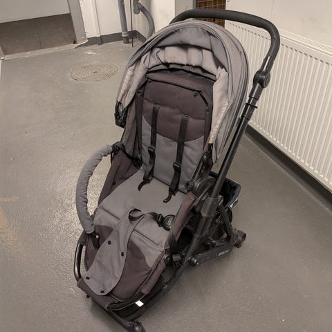 Britax Smile lastenrattaat violettina. Rattaissa on kori tavaroiden säilytykseen ja säädettävä kuomu. Säilytetty aina sisällä ja yleisesti ottaen siisti.