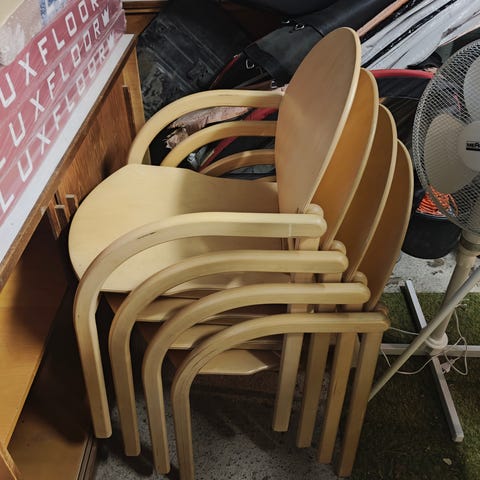 3kpl ruokapöydäntuoleja, 2 tuolissa pientä kulumaa, näkyy kuvissa. Muuten hyvässä kunnossa ja ovat toimineet erinomaisina ruokapöydäntuoleina.