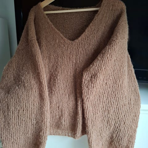 Fuksia (pinkki) neule, ostettu Josefiinan aitasta. Ei ole kuin sovitettu. Alpakkaa 40 prosenttia, villaa 20 prosenttia, polyamidia 37 prosenttia, elastaania 3 prosenttia.
