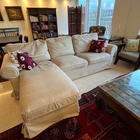 Ostan punaraidallisen (kuten kuvassa) Ikean Ektorp kulmasohvan irtopäällisen. Tarjoa!