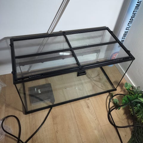 Exo Terra Terraario 90 x 45 x 90 cm. Ollut käytössä kuningasbooalla ja jäänyt pieneksi. Ostettu uutena. Kunto on hyvä. Terraariossa on Exo Terran oma alkuperäinen styroksinen taustalevy. Terraarion mukana myydään yhteenkuuluva Compact Top Large valaisin (ei sisällä lamppuja, lampun paikkoja on neljä), joka on yhteensopiva terraarion kanssa.