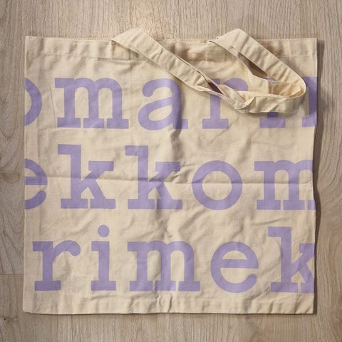 Hyvin vähälle käytölle jäänyt kangaskassi. Kuvassa näkyvä "jälki" tai "tahra" ollut uutuuttaan siinä. Leveys 46cm, korkeus ilman olkaimia 45cm.