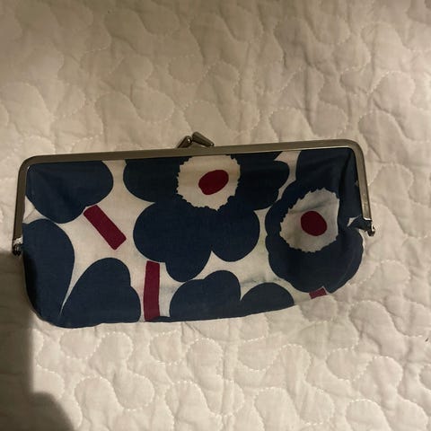 Peltinen Marimekon penaali. Unikko kuosilla. Paljon käytön jälkiä, mutta ehjä ja edelleen kivan näköinen. Vain kevyesti puhdistettu mutta ei ole yritetty kiillottaa tms. Tästä retro penaali seuraavalle !