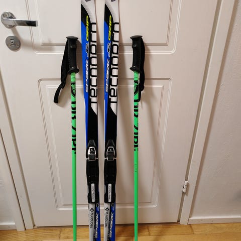 Peltonen sukset 120, sauvat n 83cm. NNN-siteet. Siistissä kunnossa, ehjät.