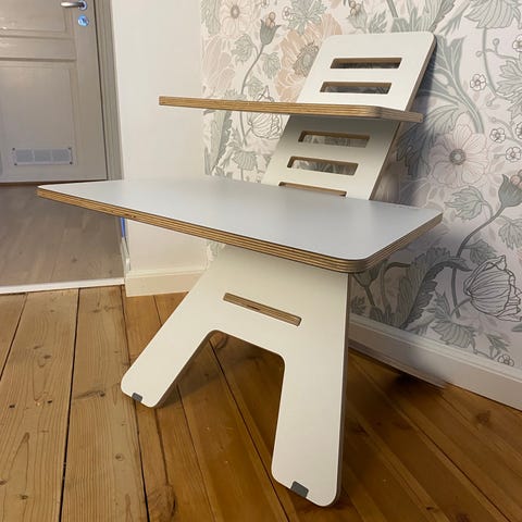 GetUpDesk Light on säädettävä tietokonepöytä. Se mahdollistaa työskentelemisen seisten silloin, kun ei ole korkeussäädettävää pöytää. GetUpDesk Light on kehitetty kannettavan tietokoneen käyttäjälle vähentämään istumista ja mahdollistamaan vaihtelevuutta työasentoon. Lisätietoja ErgoFinland -sivuilta. Nouto Tampereen keskustan tuntumasta.