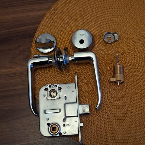 Oikeakätinen umpioven lukkorunko Abloy 4195 ja vastarauta 4690.