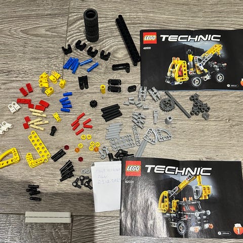 Kaikki osat ja ohjeet tallessa. Vetomekanismi toimii.