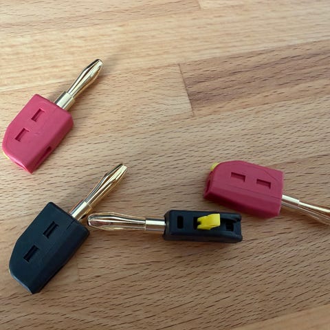 Käyttämättömät banaanipistokkeet alkuperäispaketeissaan. 2kpl/pkt, 2pkt.