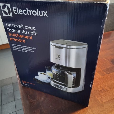 kahvinkeitin, väri valkoinen. Sähkökäyttöinen laite kahvin valmistukseen, jossa mukana lasinen kannu ja mitta-asteikko veden määrän seuraamiseen.