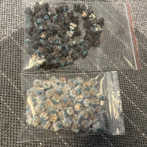 Kokoelma mekaanisen näppäimistön kytkimiä, valmistaja Kailh, mallia MX. Muovinen levy johon kytkimet sopivat. Kätevä jos haluaa kokeilla miltä erilaiset switchit tuntuvat.