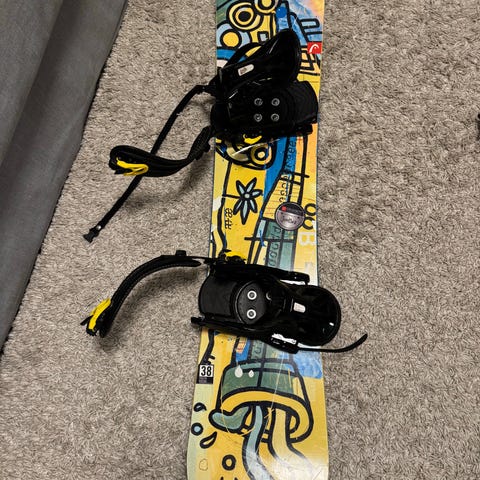 Warp 130cm lasten lumilauta. Hyvässä kunnossa! Siteet on myös Warpin.