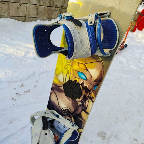 Burton Clash lumilauta ilman siteitä: hyvässä kunnossa, pohjassa yksi syvempi uutta ja toinen pienempi naarmu.