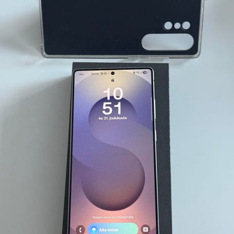 Samsung Galaxy S25 Ultra + Watch Ultra – kuin uudet!Myyn setteinä Samsung Galaxy S25 Ultra (12/512 Gt) ja Galaxy Watch Ultra 2025 (64 Gt maksimitallennustila) – molemmat erinomainen kunnossa, kuin suoraan laatikosta. Ostettu viralliselta Samsungin sivustolta: S25 Ultra 22.2.2025, Watch Ultra 9.8.2025. Kaikki toimivat moitteettomasti, akut 100% kunnossa, ei naarmuja. Huippuominaisuudet