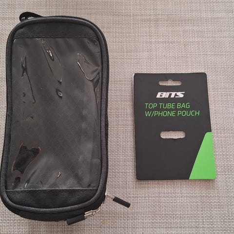 Pyörään kiinnitettävä laukku. Sininen, tilavuus 17 litraa, vettähylkivä, nylonia. Sisällä muoviset vahvikkeet.