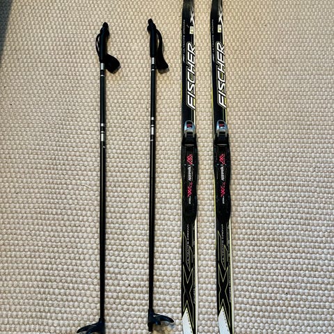 Lasten hiihtosukset 128 cm ja sauvat 87 cm