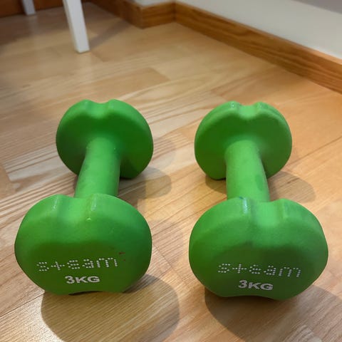 Bundan nilkkapainot. Painon määrää voi säätää irroittamalla painoja paikaltaan. Pikainen nouto pattijoelta.