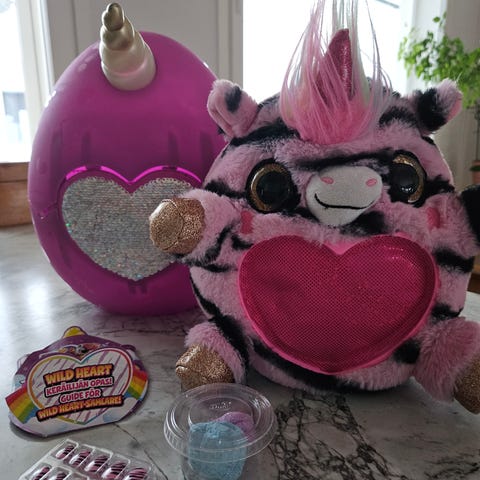 Myydään zurun rainbocorns yllätysmuna, jonka sisällä pehmolelu ja kääntöpaljeteilla koristeltu sydän, jonka voi siirtää yllätysmunasta pehmoon.