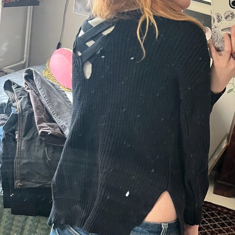 Pituus 55 cm, kainalo-kainalo 43 cm ja hihan pituus keskeltä niskaa mitattuna 77 cm.