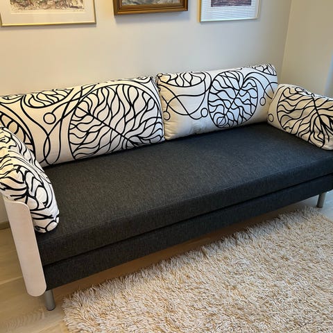 Sohva toimii sohvana, yhden hengen vuoteena, parisänkynä ja kahtena erillisenä vuoteena. Sijauspatjat käsinojatyynyjen sisällä, ne myös hyvässä kunnossa ja puhtaat.