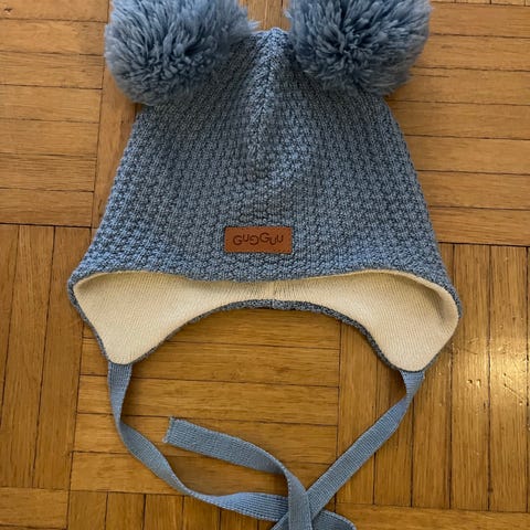 Siistissä kunnossa oleva Gugguun vaaleansininen merinovillapipo. Sisällä kokomerkintä L.