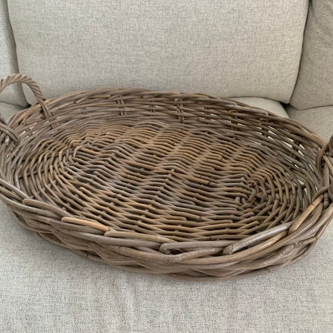 Iso rottinkitarjotin, jonka halkaisija noin 39 cm. Korkeus 7 cm.
