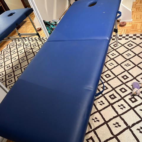 Hyvin vähän käytetty hoitopöytä, joka taittuu kokoon ja on kevyempi kuin useat vastaavat mallit. Voi käyttää esim. fysioterapia / kosmetologi hoidoissa. Korkeus säädettävissä. Mukana suojapussi. Nouto Munkkivuoresta.