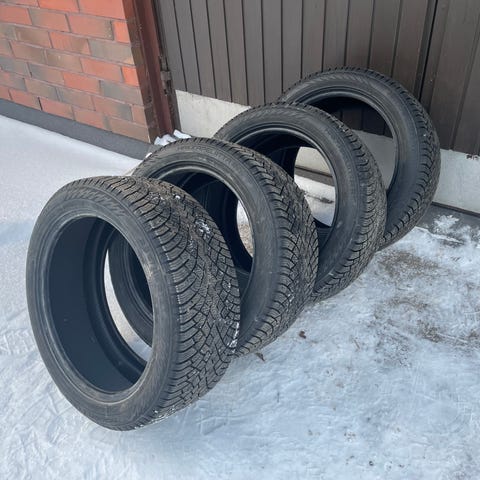 Renkaat ovat käytännössä uudet, ajettu n. 50km. Yksi renkaista on täysin käyttämätön. Paistettu 16/25.