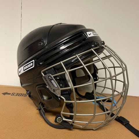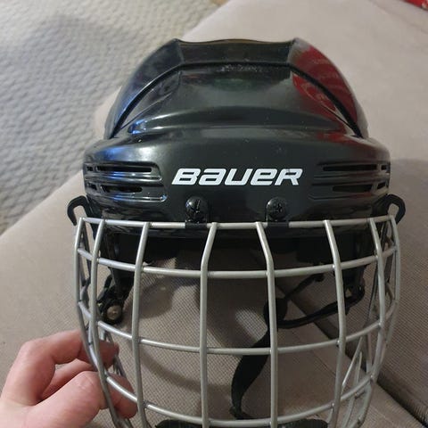 Kypärästä puuttuu toinen ristikkoa pitävä neppari, muuten hyväkuntoinen. Koko s